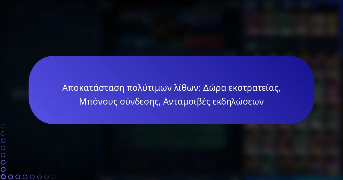 | Πολύτιμοι Λίθοι | Αγορά πακέτων καρτών, αντικειμένων και συμμετοχή σε εκδηλώσεις | Μπόνους σύνδεσης, ανταμοιβές εκδηλώσεων, δώρα εκστρατείας |
